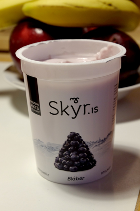 Eine Besonderheit im isländischen Lebensmittelregal ist Skyr. Skyr ist irgend etwas zwischen Quark und Dickmilch, hat aber eine andere Konsistenz. Joghurt ist auf Island sehr flüssig, Skyr hingegen erinnert an Joghurt, wie er bei uns verkauft wird. Hergestellt wird Skyr aus entrahmter Milch und Lab. Der Fettgehalt liegt bei 0,1 – 0,5 %, der Proteingehalt bei 11 %. Warum es bei uns Skyr nicht gibt, ist mir völlig unverständlich. Mit Blaubeeren oder Roter Grütze schmeckt Skyr sensationell. Die Schweizer sind hier den Deutschen voraus – kürzlich habe ich nämlich gelesen, dass Skyr in der Schweiz vereinzelt angeboten wird.