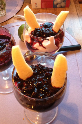 Blaubeeren sind auf Island im Sommer an jeder Ecke zu finden und dürfen auch ungehemmt gepflügt werden. Aus den Blaubeeren haben wir bei unserem Sommeraufenthalt flugs einen Wikingerbecher gemacht.